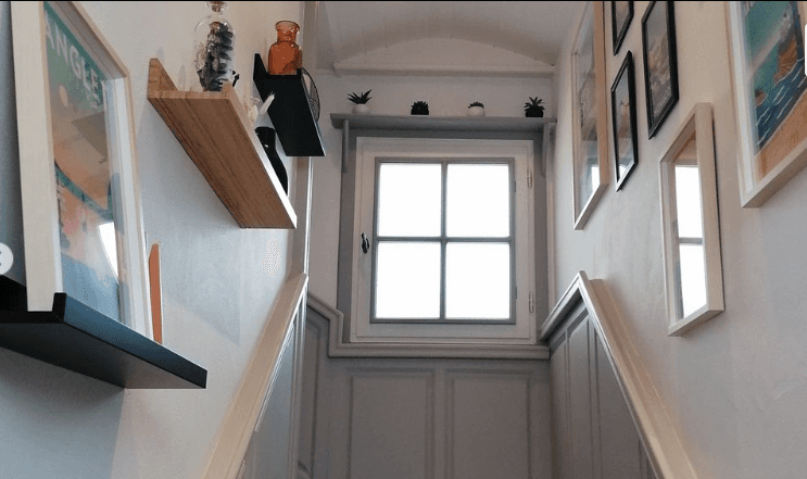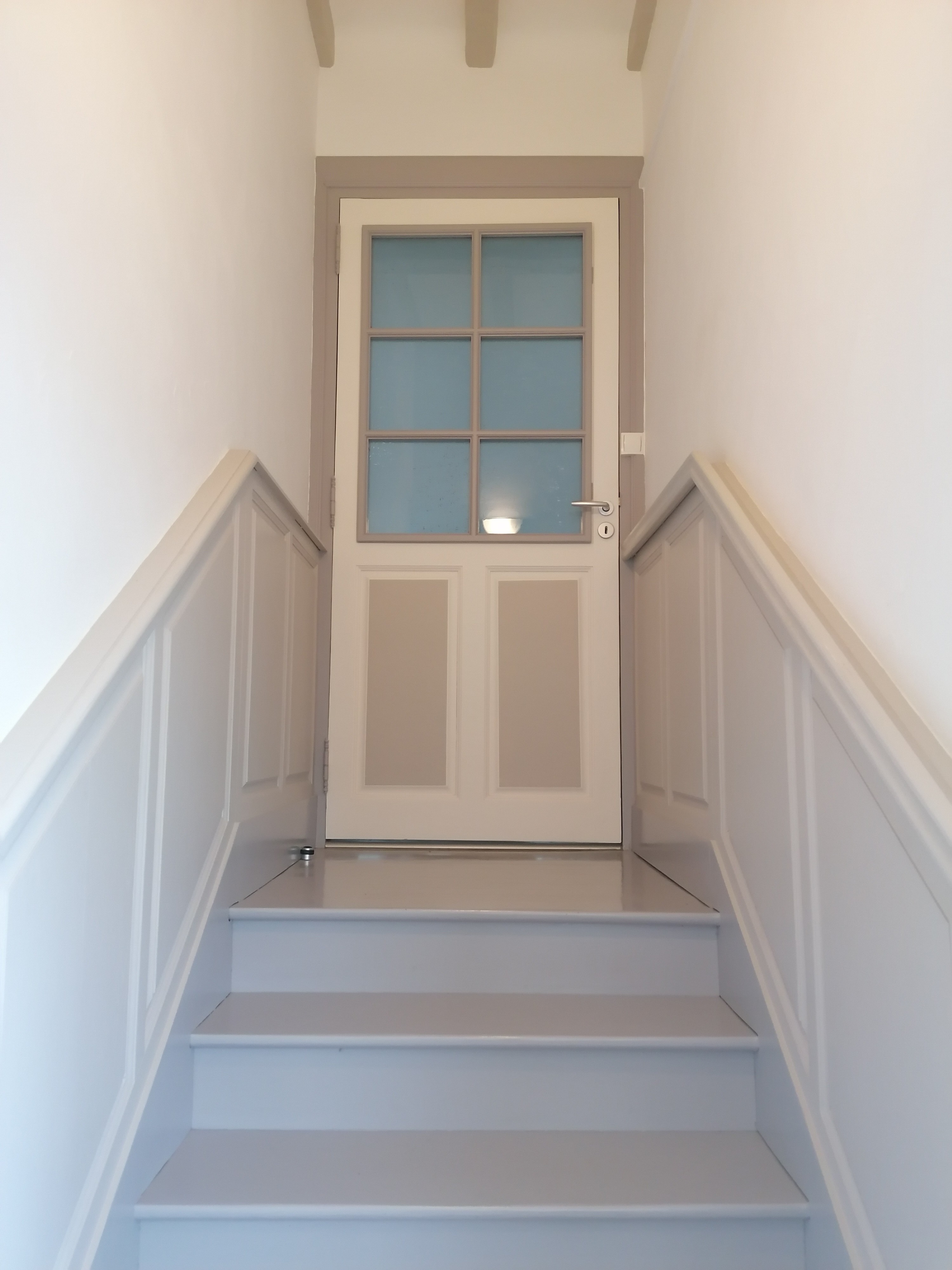 Conseils en décoration pour donner vie à une cage d'escalier qui est l'entrée principale d'une maison de ville à l'étage.